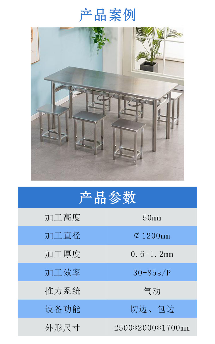 本文介紹的是異形切邊包邊機(jī)用于食堂餐桌椅加工設(shè)備,先把產(chǎn)品工件放入工作臺,按一鍵啟動后模具旋轉(zhuǎn),切邊功能座進(jìn)刀,跟隨模具旋轉(zhuǎn)施壓剪掉加工件的邊料,剪邊完成后包邊輪到達(dá)工件邊緣進(jìn)行包邊,最后取出加工后的產(chǎn)品工件。 (公司根據(jù)客戶需求,為客戶量身定制適合的設(shè)備,歡迎新老客戶咨詢了解)